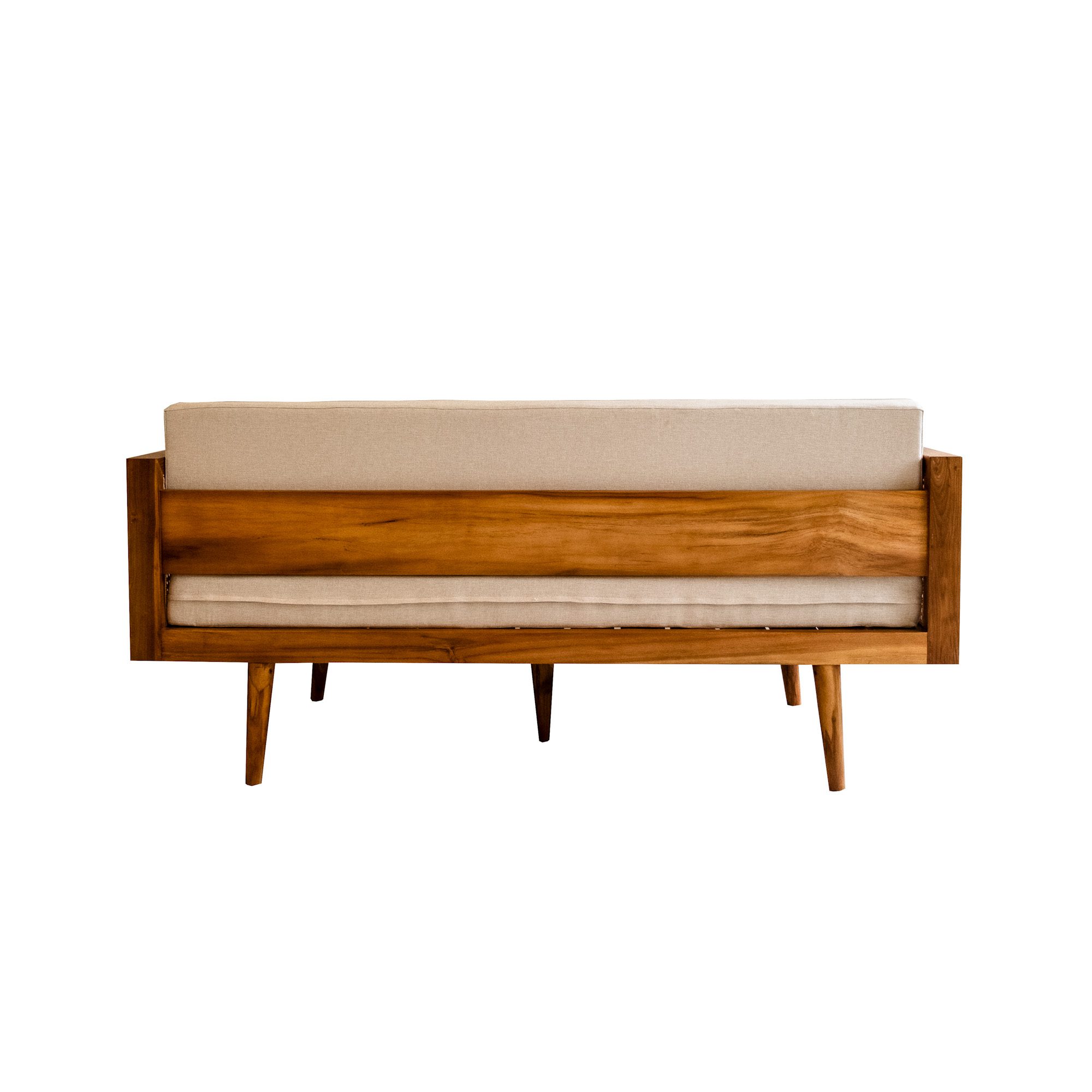 - For the teak frame, you can wipe the furniture using damp cloth soaked in mild soap and warm water. For more stubborn grime, feel free to use a soft scrub brush.