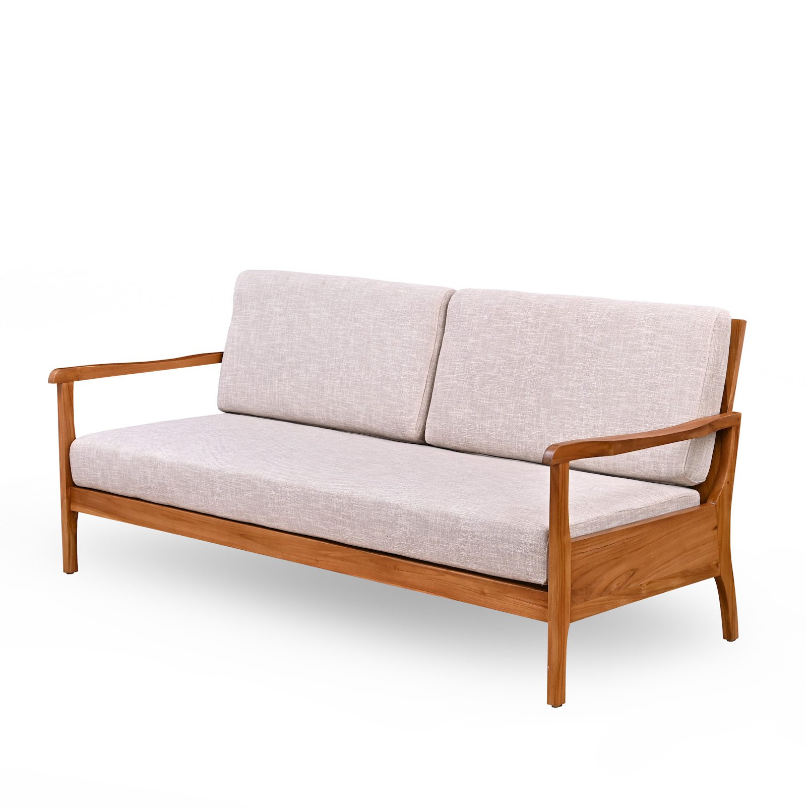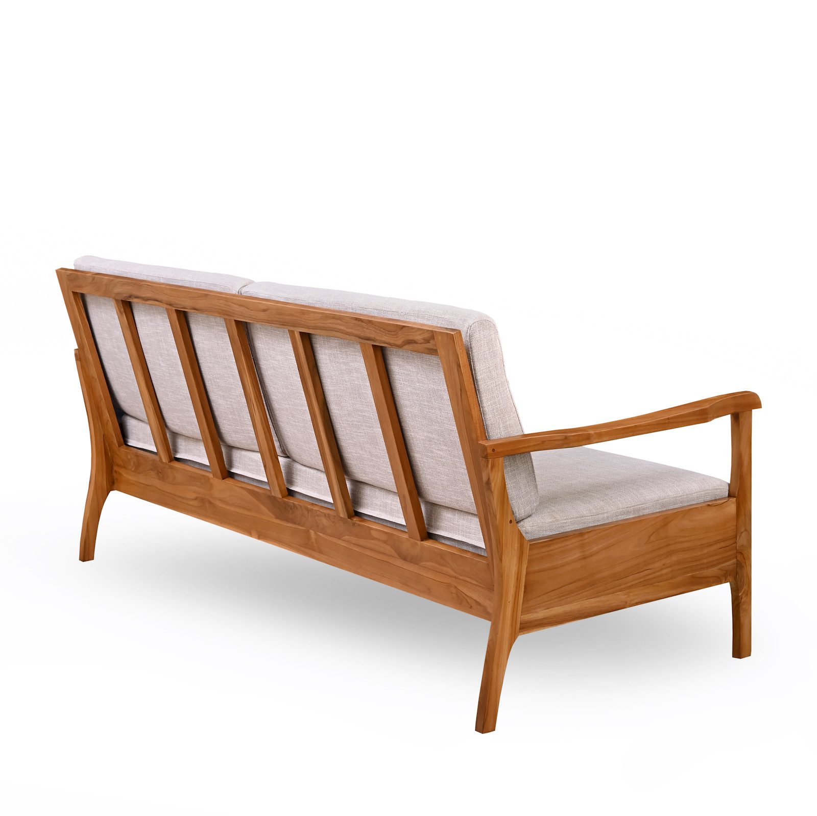 Experience unparalleled comfort and timeless style with EDMUND Teak Sofa. This stunning three-seater sofa is meticulously crafted from premium teak wood, renowned for its durability and rich, natural beauty. Designed for ultimate relaxation, it features plush, removable fabric cushions that invite you to sink in and unwind. The versatile cushions not only provide exceptional comfort but also allow for easy cleaning and the flexibility to refresh your look. The EDMUND Teak Sofa is the perfect centerpiece for any living space, blending enduring quality with adaptable elegance.