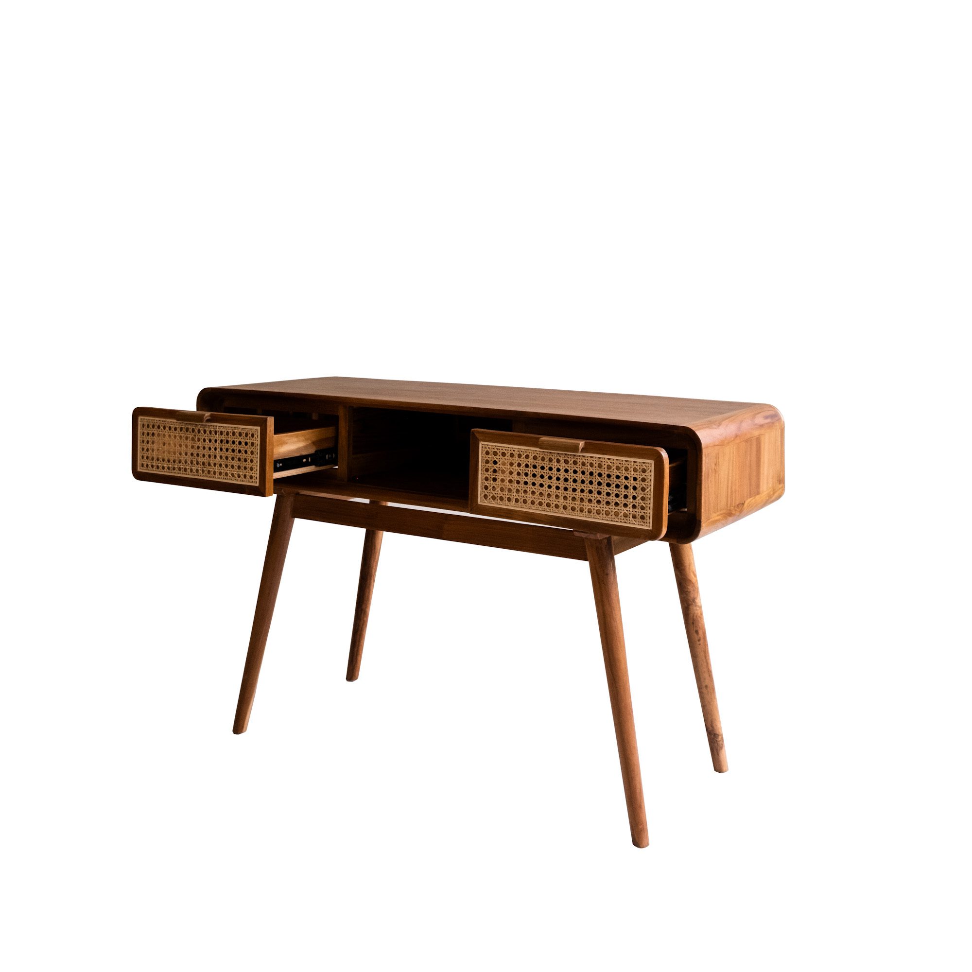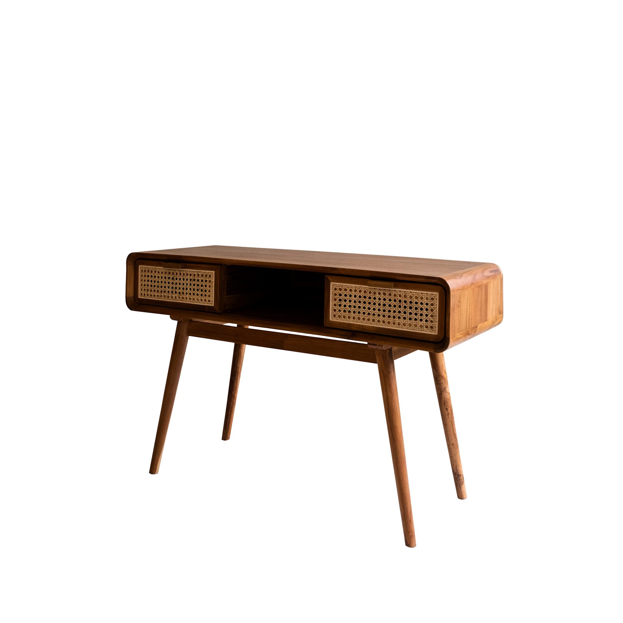 Solid Teak Wood Table in Natural Finishing with Natural Rattan