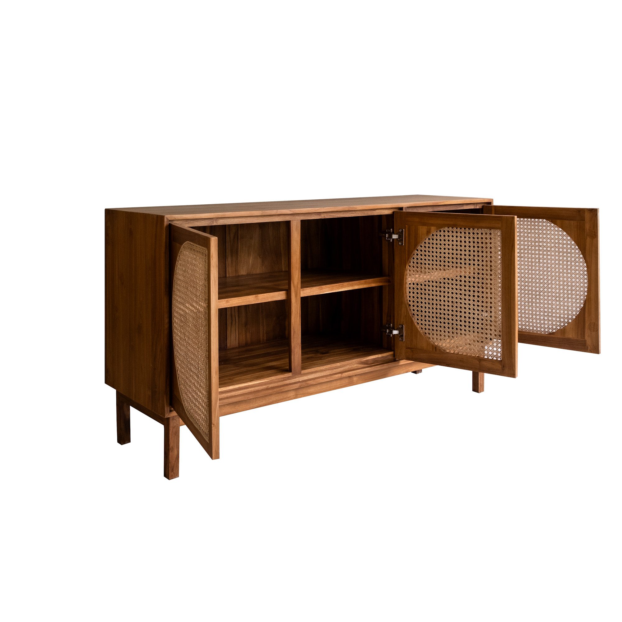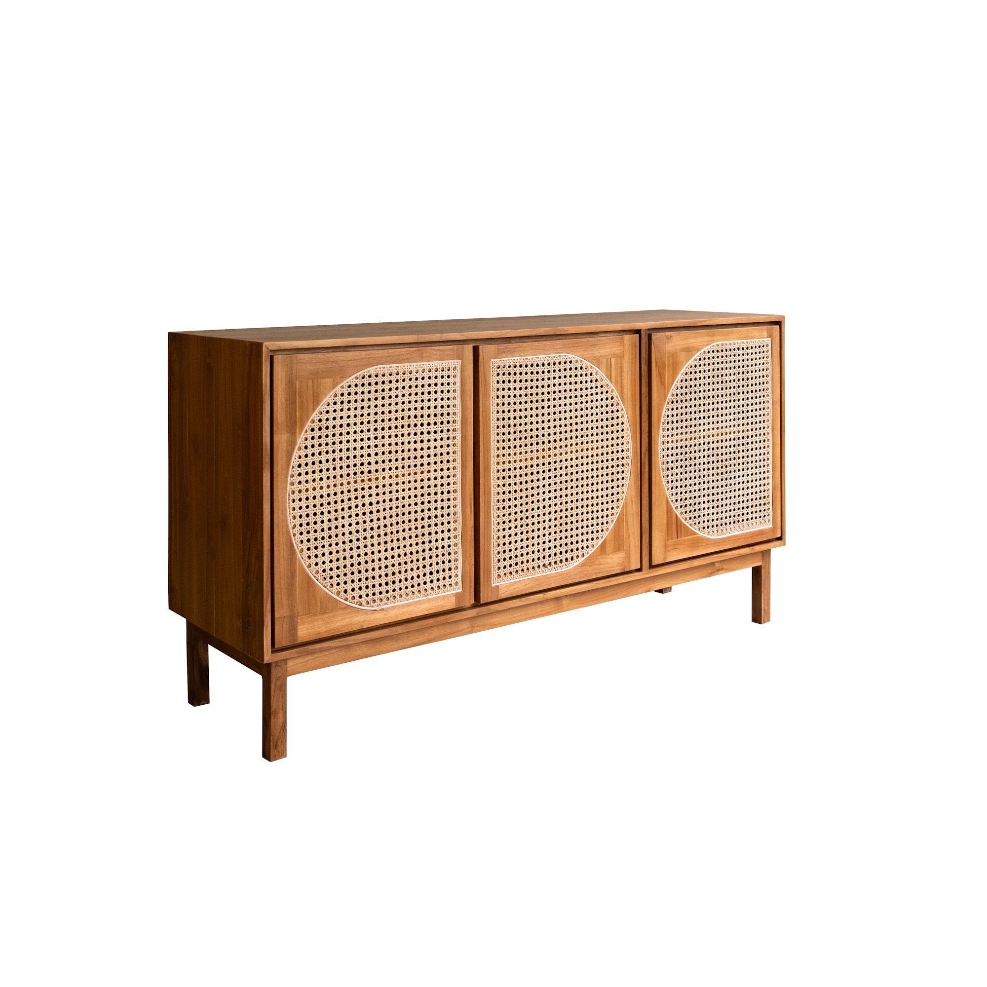 Solid Teak Sideboard in Natural Finishing with Natural Rattan